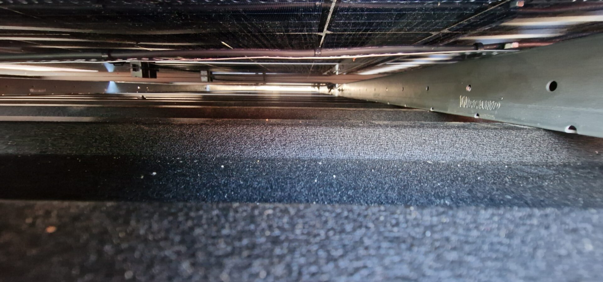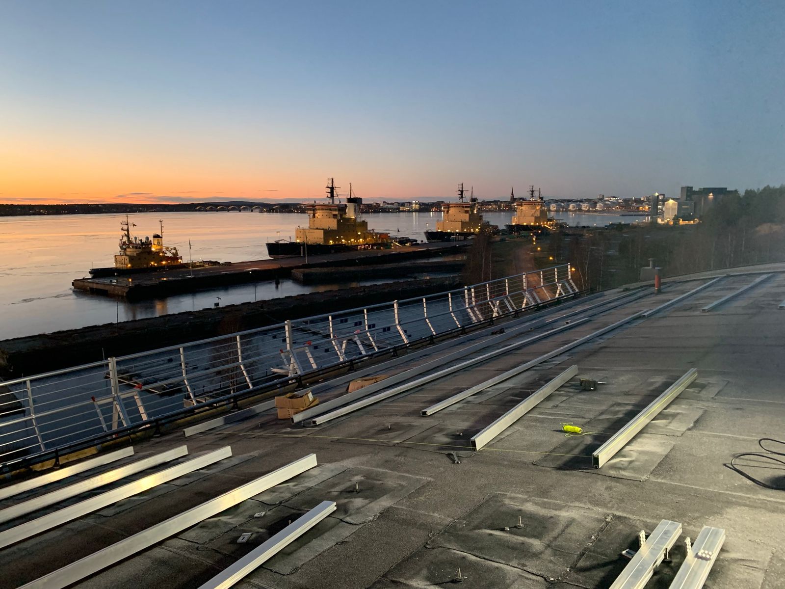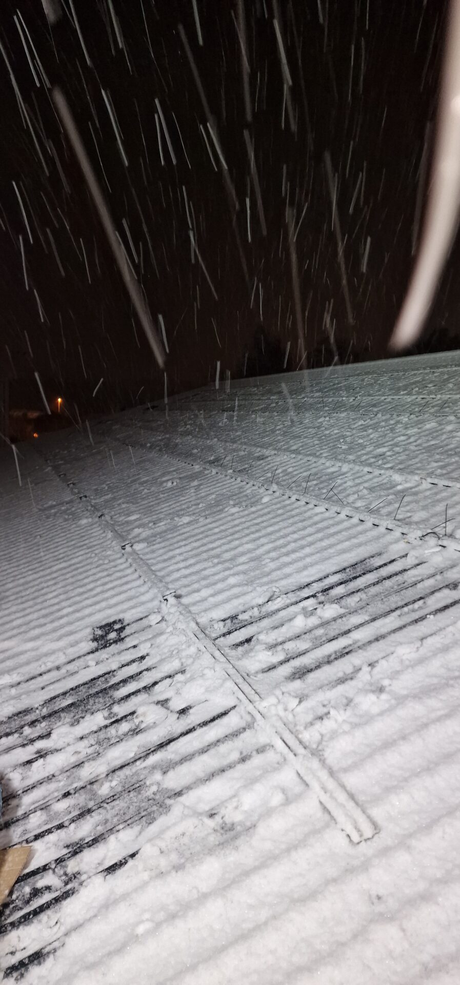 Solární panely jsou připevněny k montážním rámům, které jsou pevně spojeny s vlnitým plechem.