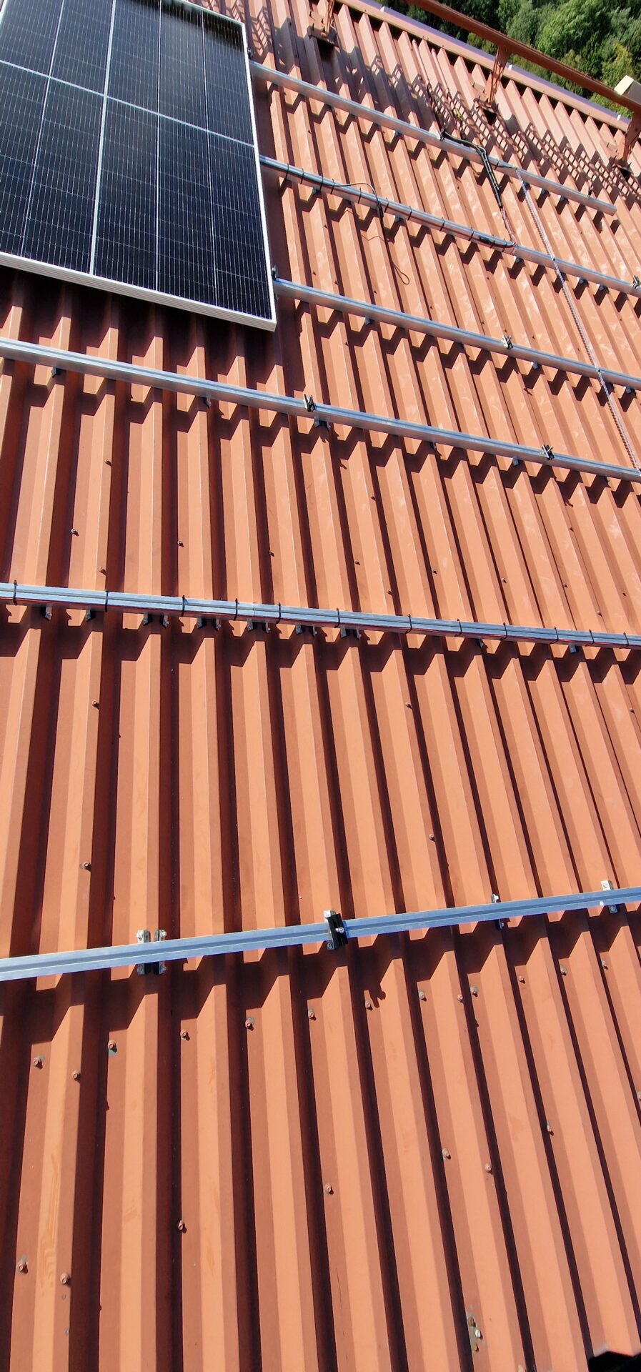 Tento typ instalace je určen pro střechy s trapézovými plechovými panely.