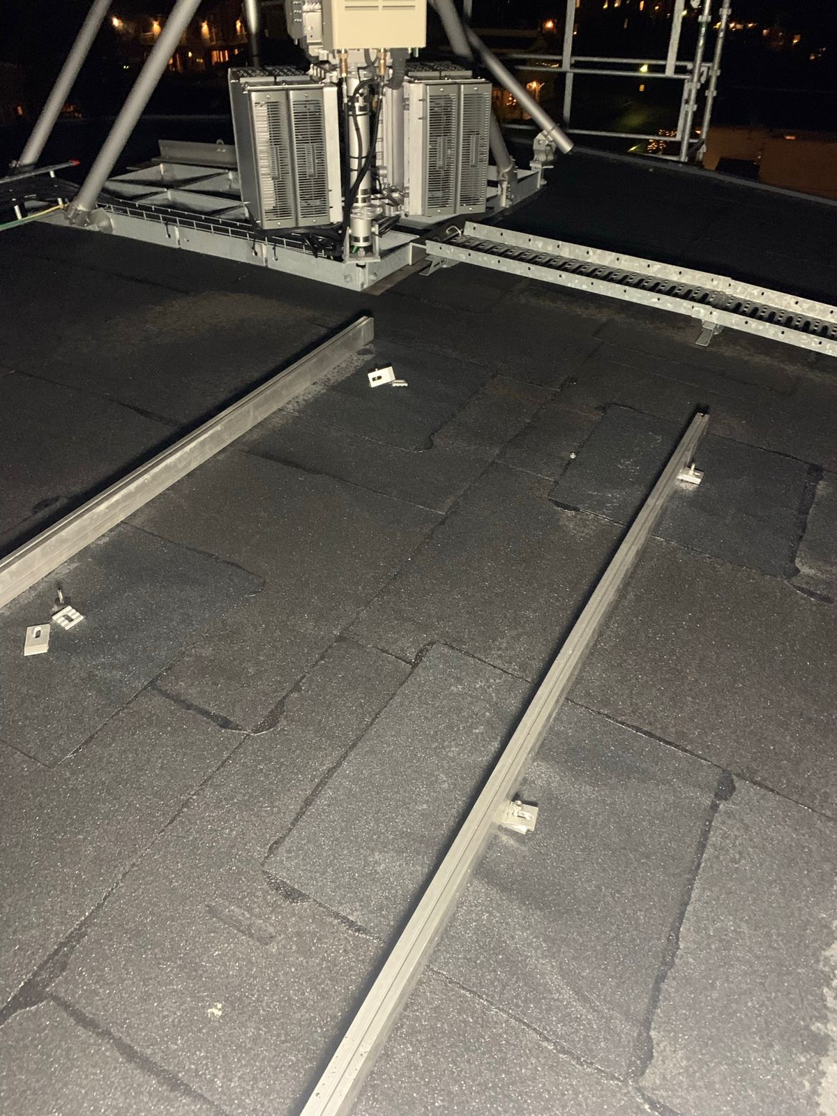 Na plochých střechách mohou být solární panely namontovány na montážní rámy, které jsou buď připevněny k povrchu